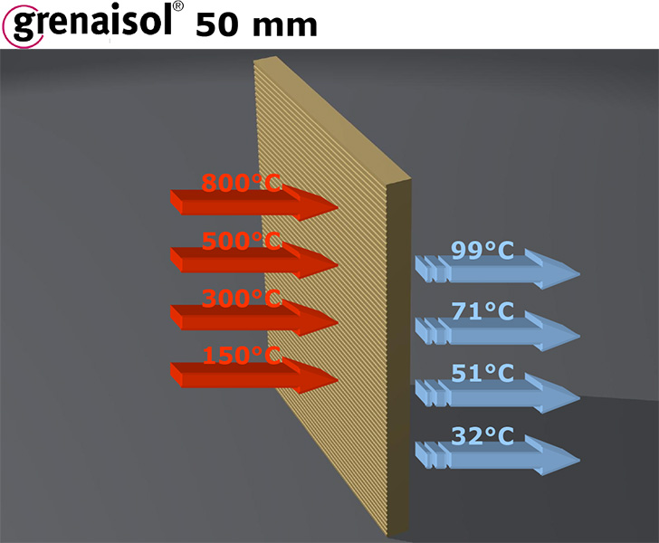 Grenaisol plāksnes ir ar zemu siltumvadītspēju, izturīgas un stabilas. No plāksnēm var veidot dažādas kamīna apdares formas un variācijas, tās var krāsot, aplīmēt ar dekoratīvām flīzēm un akmeni, kā arī pārklāt ar apmetuma kārtu.