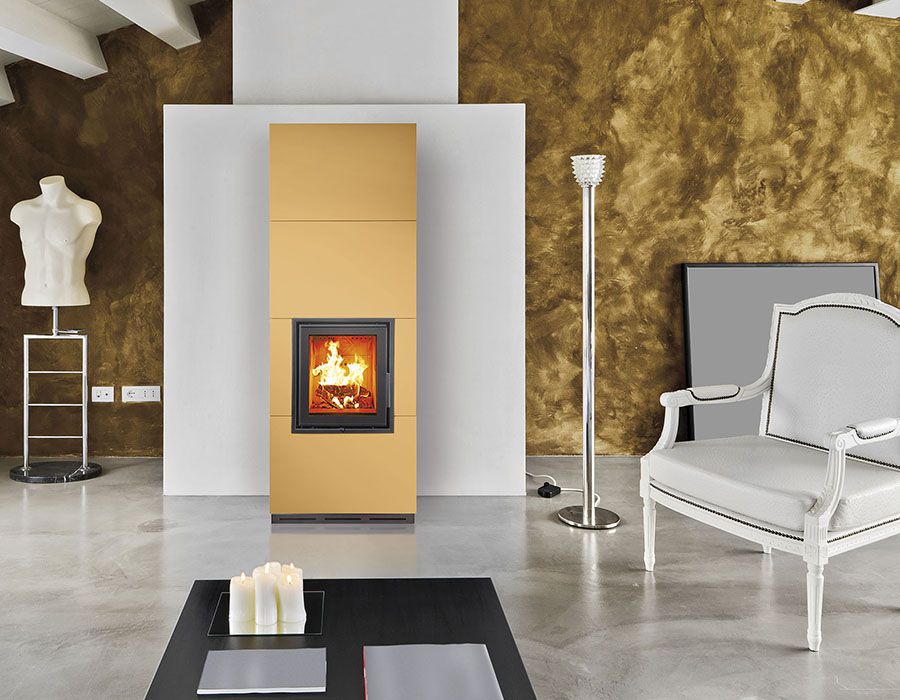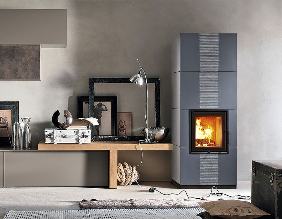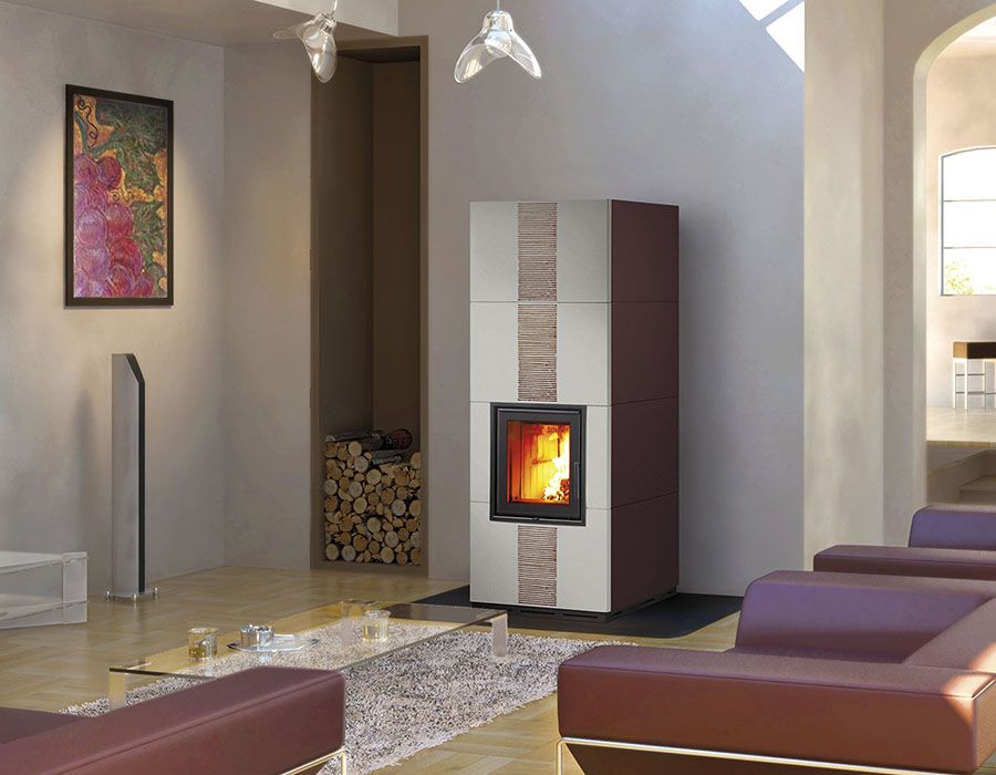 Sintesi ir moderna kamīnkrāsns ar vienkāršu un lineāru formu, kura veidota no glazētām, liela formāta krāsns keramikas plāksnēm.