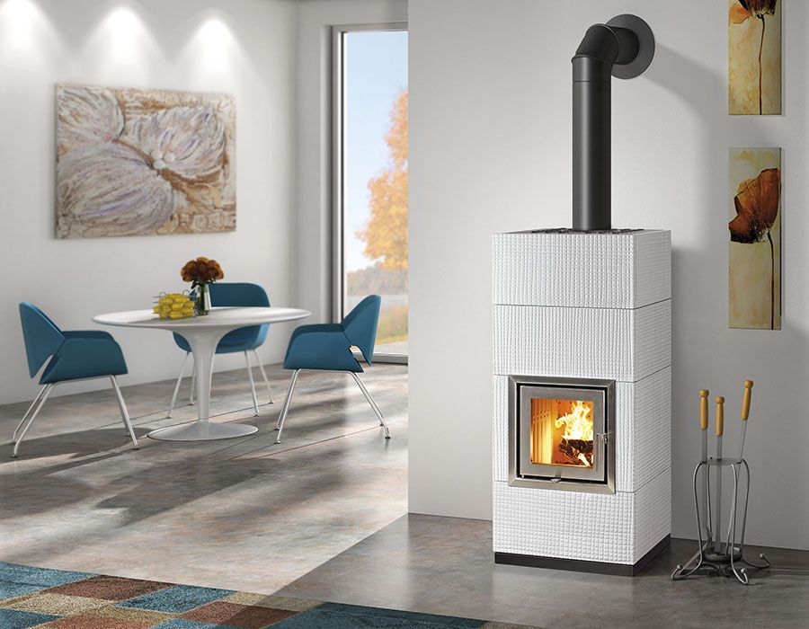 Kamīnkrāsns keramikas apdare nodrošina siltuma akumulāciju bez pārkaršanas vai straujām temperatūras izmaiņām.